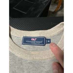 Vineyard Vines Men's Feeder Stripe Double Knit Crew Sweater. Wool Blend. Neutral Beige Tone Color. Casual, Office, Travel, Commute, Preppy.