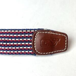 Vineyard Vines Woven & Leather Belt Red White Blue Stripe Men's Size 30