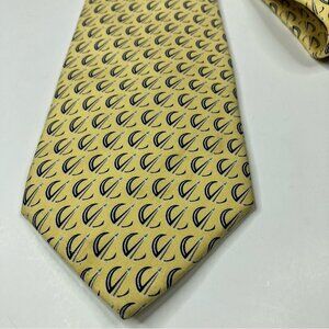 Vineyard Vines | Yellow Blue Patterned Men's Necktie 100% Silk Made in USA