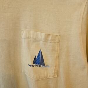 Vineyard Vines yellow long sleeve cotton t-shirt, boy's size extra large. Soft 100% cotton crew neck tee with blue sailboat logo graphics on front and back.