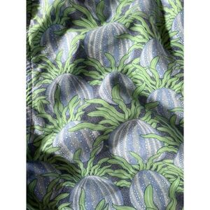 In good condition no issues. Tie string elastic waist, inner outer pocket, mesh lining and cool sea urchin graphic