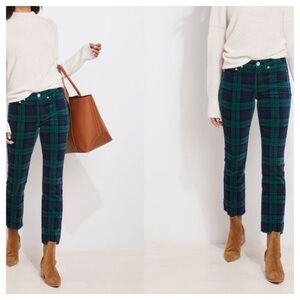 Vineyard Vines black watch plaid velvet pants Crop Straight High rise size 26