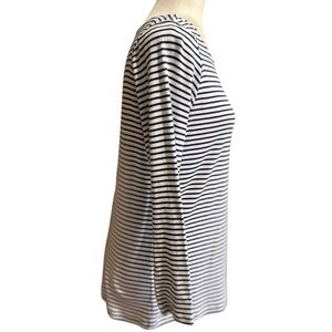 Stylish blue and white striped top for women. Perfect for casual outings or a day at the office.
