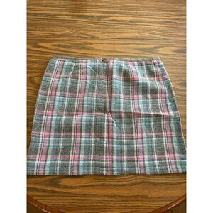Vineyard Vines by Shep & Ian wool lined plaid skirt size 10. Pink Gray. Zips and hooks in back. Waist measures approximately 17” side to side. Waist to hem measures approximately 16.5”. Good pre-owned condition.