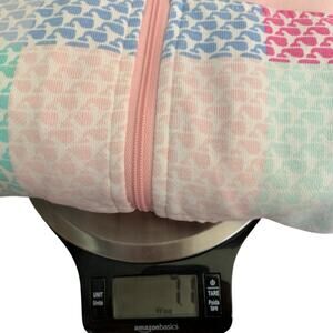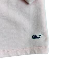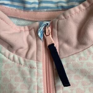 Light pink quarter zip pullover with pastel whale print on shoulders