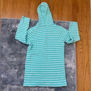 VV full zip front girl’s light weight hoodie. Aqua and white stripe, SZ Medium 10/12. VGUC- no stains but has some minor fuzzing to fabric. Has a small sharpie mark on label because we are a divorced household and that is how we distinguish which clothes belong to which house 🙂 Perfect for spring and summer! Offers welcomed