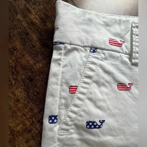 Young ladies Stars and Stripes, whales printed on these Vineyard Vines shorts. 2- side pockets. 2- back pockets. Belt loops. 1- hook, zipper fly. Like new condition.