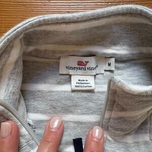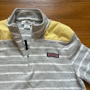 Vineyard Vines gray white striped yellow mock neck quarter zip sweater SIZE M