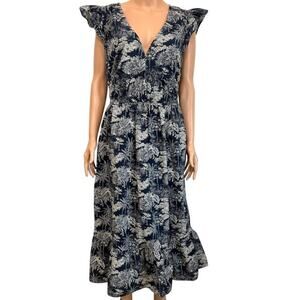 Vineyard Vines large tropical poplin flutter midi dress pockets D1 2761