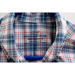 Vineyard Vines mens Performance Classic Fit Whale button down plaid shirt blue L