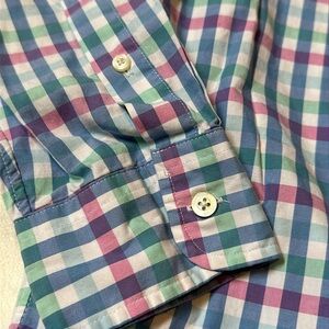 Vineyard vines by Shep & Ian classic fit Tucker shirt 100% cotton size medium. Style 1W1985 like new condition. plaid striped blue pink & green. I love to bundle!