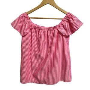 Vineyard Vines oxford stripe off shoulder top bright coral size Small