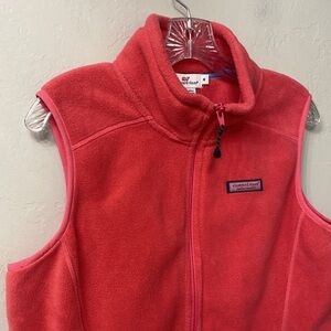 Vineyard vines pink fleece vest size medium. Great condition. 100% polyester. Has front zipper pockets.Length is 24.5” and chest is 21”