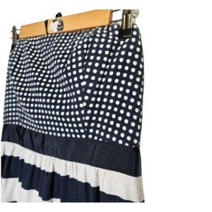 Immerse yourself in elegant style with Vineyard Vines size 6 cotton Long Strapless Dress. Features a charming back bow, zip, polka dot, nautical stripes, and it's lined. Complete with pockets, this dress exhibits multiple marks throughout, adding to its unique charm.