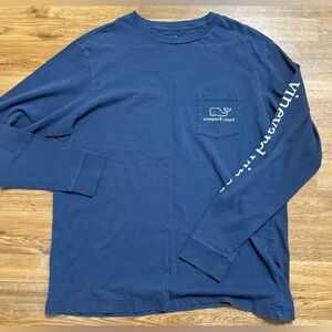Vineyard Vines men’s vintage Whale navy blue long sleeve pocket tee