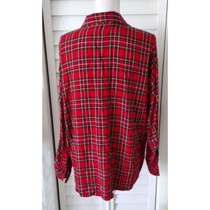 This relaxed Vineyard Vines women's shirt is perfect for any occasion. With its classic red plaid pattern and collared neckline, it is a timeless piece that will never go out of style. The long sleeves and lightweight fabric make it comfortable and easy to wear all day long. The button-up design and accents add a touch of preppy sophistication, while the size 10 fit ensures a flattering and comfortable look. Made from high-quality rayon fabric, this shirt is sure to last for years to come. Whether you're dressing up or down, this Vineyard Vines shirt is a versatile addition to any wardrobe. EUC no known defects.