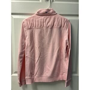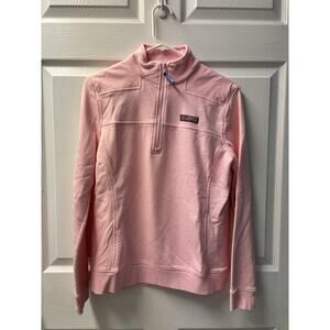 The Vineyard Vines 1/4 Zip Sweatshirt for women in size M is a stylish and comfortable pullover in a beautiful pink color.