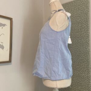 Vineyard Vines Light Blue Embroidered Lightweight Tie Strap Tank Blouse