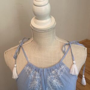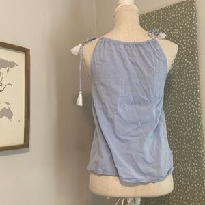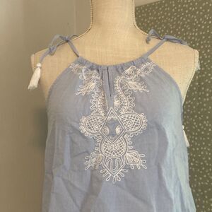 Vineyard Vines Light Blue Embroidered Lightweight Tie Strap Tank Blouse Sz 00
