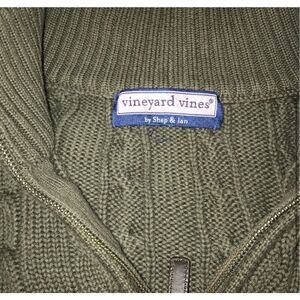 Vineyard Vines Men’s Chunky Quarter Zip Sweater Cable knit Olive Green READ L