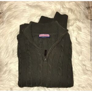 Good, preloved condition. Vineyard Vines Quarter Zip Sweater. Chunky, cable knit. Pullover. Nice thick weight. Size tag is missing, please see measurements for exact fit.