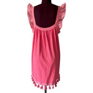 Vineyard Vines Ruffle Linen Cover Up Mini Dress Neon Rose size L Sleeveless
