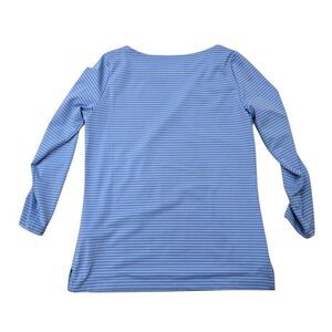 Vineyard Vines, Modern, Straight, Fabric, Polyester Blend, Long Sleeve, Easy Care, Striped, Lightweight, Fall, Summer, Spring, Vineyard Vines Sankaty Top Womens XS Blue Stripe Boat Neck Essential Stretch Tee.