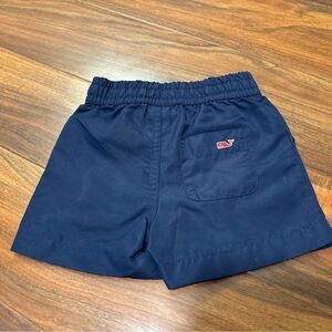 Vineyard Vines Target navy swim trunks. I plastic stretch waistband. 100% polyester. Size 18 months. Good condition.