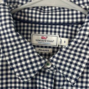 Vineyard Vines Womens Blue and White Plaid Long Sleeve Button Shirt. Size 8