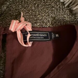 Vineyard vines NWOT chocolate brown puff sleeve cinch tie crop cotton blouse Szm
