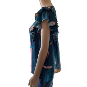 Vineyard Vines button down blouse geometric pattern, flutter sleeves, button down top