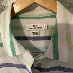 Vineyard vines size 2 linen cotton blend long sleeve tunic pearl buttons. Excellent condition. No holes stains or flaws.