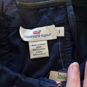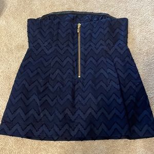 Brand new vineyard, vines, strapless top, size 2. I got it at a gift and it does not fit. It still has its original tags on it. The color is a beautiful navy blue with a chevron style design. The top is fully lined and has boning inside at the chest for added support.