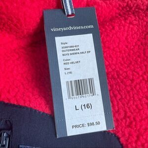 Vineyard Vines Boys' Red Velvet Sherpa Fleece Half-Zip Sweatshirt Jacket NWT L