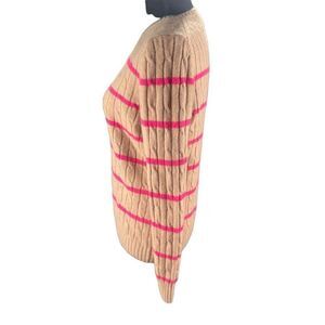 Vineyard Vines Cashmere Coral Lane Cable Sweater Caramel Pink Striped Size M