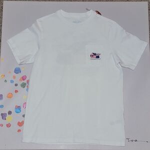 Machine Washable. Material is 100% lightweight cotton. Comfy, strong, and breathable fabric. Classic-fit. Short-sleeve tee. Design on front chest pocket and back.