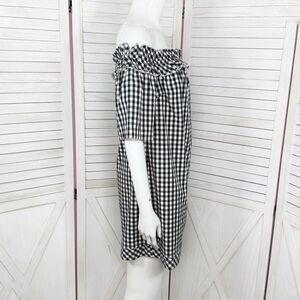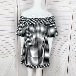 Vineyard Vines Gingham Check Off The Shoulder Shift Mini Dress Black White XS