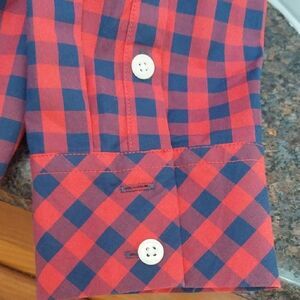 This Vineyard Vines shirt features a striking red and blue color scheme, perfect for a casual day out. Crafted from quality materials, it offers a comfortable fit and a timeless checkered pattern that adds a touch of classic style to any wardrobe. This blouse is new but has not tags. It is one of Vinyard Vines most classic and iconic sellers.