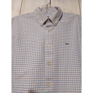 Vineyard Vines Shirt Men's Extra Large Pink Blue Button Front Long Sleeve Whale