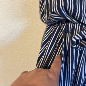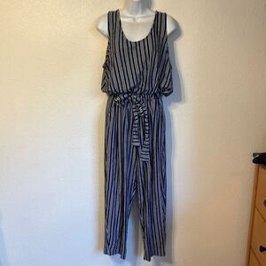 Navy and white striped sleeveless jumpsuit from Vineyard Vines. Drawstring waist. Size XL.