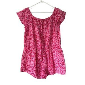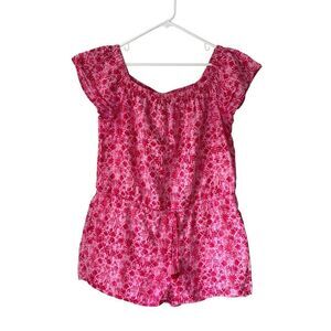 Vineyard Vines Tile Otomi Off Shoulder Romper size XL Linen Bland Pink Red