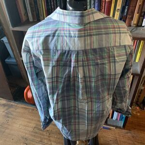 Vineyard Vines business casual, pink and green plaid, button down shirt. Pairs well with slacks or shorts. In good, used condition. Approximately 24.5 inches from armpit to armpit, 33 inches long, 25.5 inch long sleeves. From a pet and smoke free house. Happy to bundle