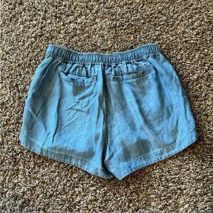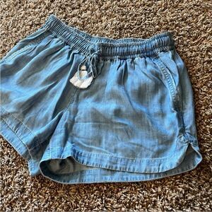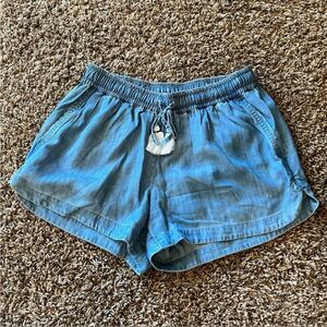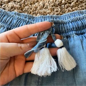 With a dolphin hem, tassel drawcord, and two front slash pockets these cute chambray shorts are made for brunch, concerts, and boat days!