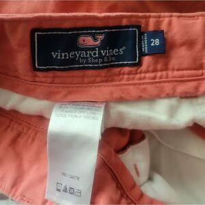 Salmon color shorts with front and back pockets. In good used condition. Refer to the last photo for a small spot on the right leg.