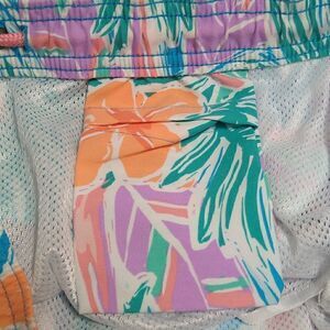 This bathing short has probably never been worn. If it had tags you would think it was new. The floral fabric is sift and dries easily.