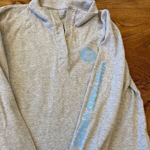 Vineyard Vines grey Quarterzip style sweatshirt. Snaps down front. Thumbholes. 100% cotton. Armpit to armpit 20 1/2 inches. Length: 24 inches. Size medium. Great condition.