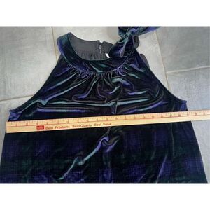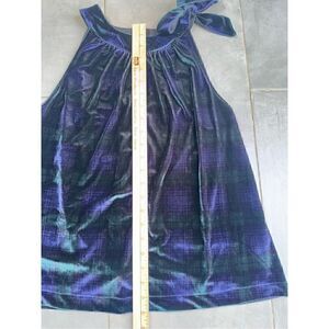 Green and Blue velvet plaid sleeveless top with back keyhole opening with double button closure.