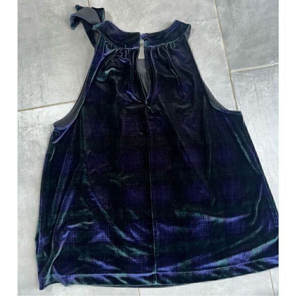 Green and Blue velvet plaid sleeveless top with back keyhole opening with double button closure.