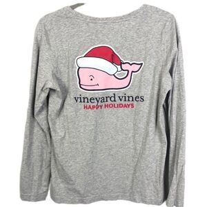 Vineyard vines, long sleeve gray pocket tee with cute signature Whale on the back great holiday shirt