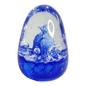 Vingate Glass Cobalt Blue Bubbles and Swirls Blown Glass Paperweight Signed 3"